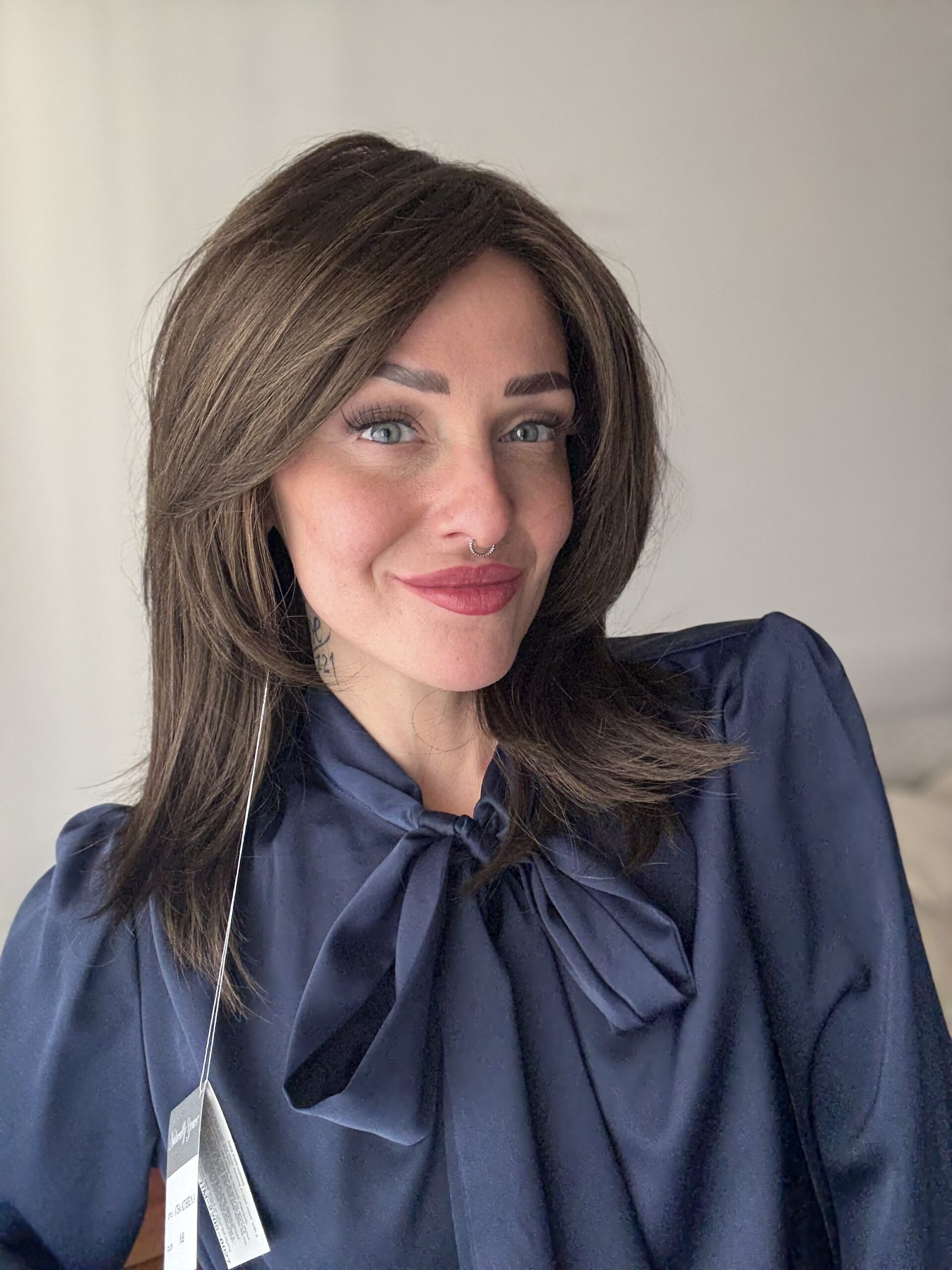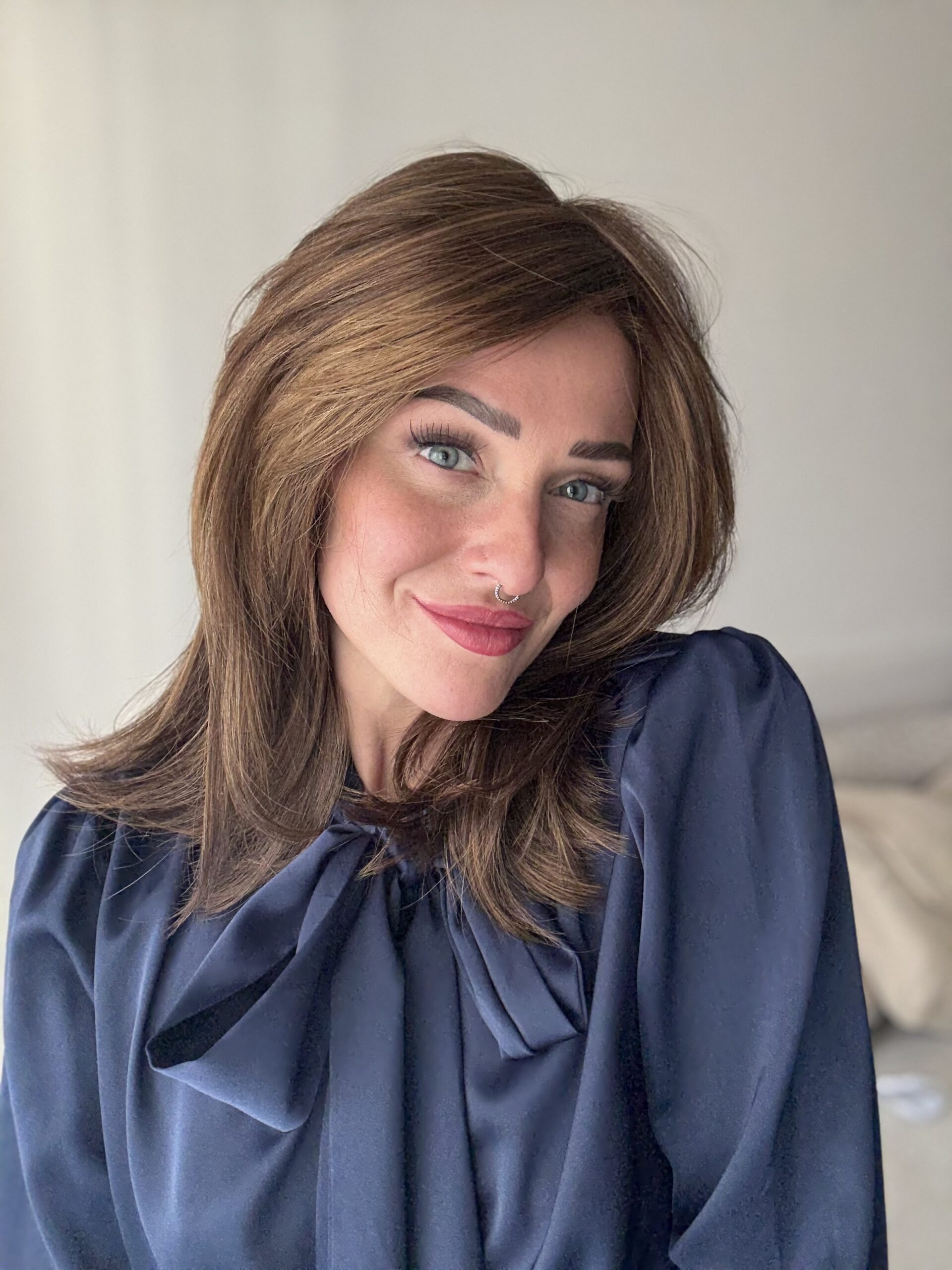 Questo modello ha la parte superiore della calotta interamente annodata a mano. Il lace front (tulle ad effetto cinema) vi permetterà di portare i capelli scostati dalla fronte, creando una transizione potenzialmente invisibile in corrispondenza dell’attaccatura dei capelli. Il monofilamento invece vi darà la possibilità di fare la riga ovunque voi vogliate.